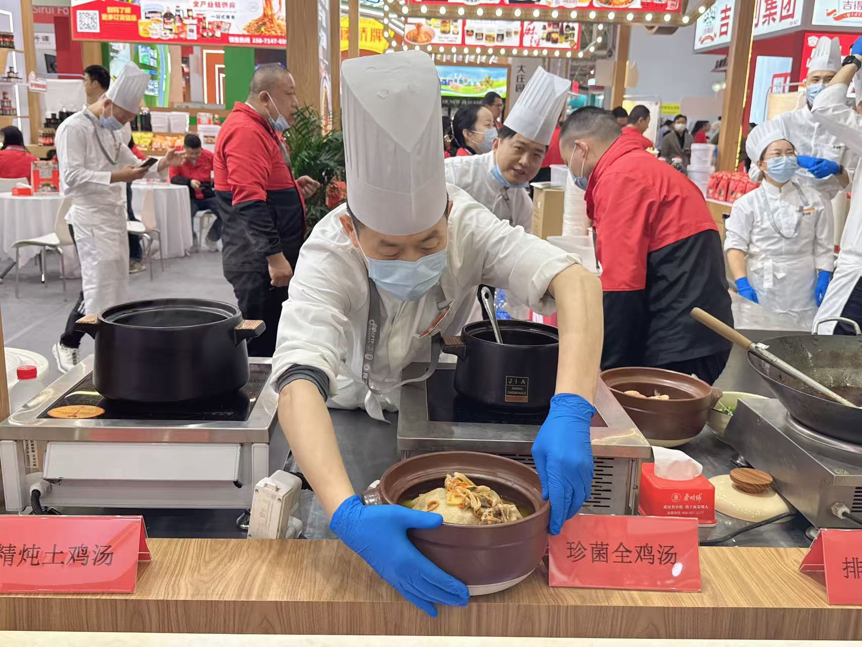 展会现场,蔡明纬以 “免费请吃面” 活动点燃人气,让到场观众直观感受武汉热干面的地道风味 —— 碱水面劲道爽滑,秘制芝麻酱香气醇厚,搭配黄陂特色腌制萝卜丁,还原 “本格派” 热干面的经典口感。同时,品牌同步展示肉圆子、粉蒸肉等湖北特色预制菜,以及日产能达 15 万斤的热干面生产线、5 万斤的芝麻酱生产线成果,凸显智能化中央厨房带来的高效供应链实力。